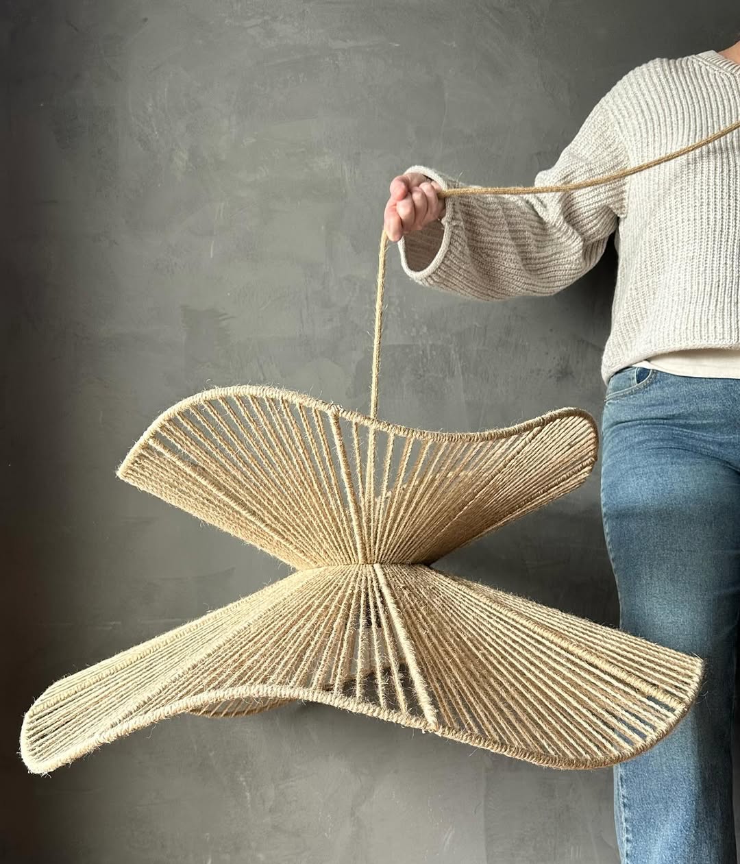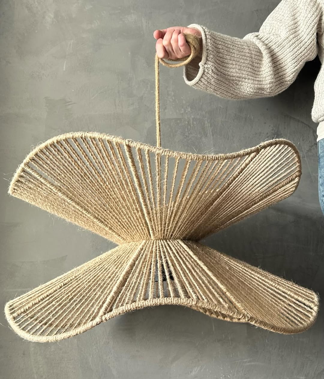 Bu doğal ve zarif avize, rustik şıklığı modern tasarımla birleştirerek yaşam alanlarınızı sıcak bir atmosferle aydınlatıyor. Jüt iplikle el yapımı olarak üretilmiş bu özel tasarım, dalgalı hatları ve benzersiz formuyla her ortamda dikkat çekiyor. Doğal malzemelerden üretilmiş olması, çevre dostu bir yaklaşımı temsil ederken, ışık geçirgenliği sayesinde mekânınıza yumuşak ve hoş bir aydınlık katıyor.
