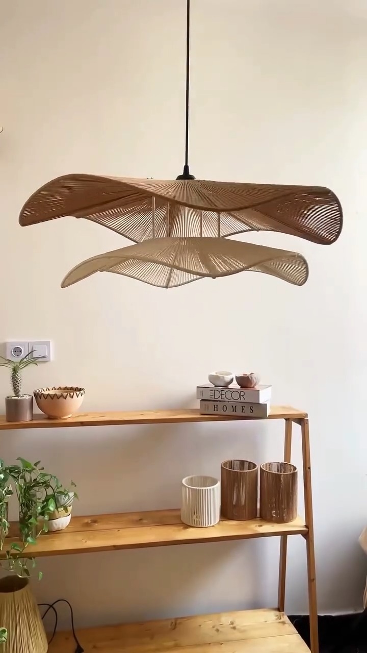 Sadelik ve doğallığın buluştuğu, modern tasarımın sıcak bir dokunuş kattığı bu zarif avize ile mekanınıza yeni bir soluk katın. Hem estetik hem de işlevsel yapısıyla göz kamaştıran bu tasarım, doğal dokular ve özgün formların uyumunu evinize getiriyor. Şıklığın doğadan gelen hali...