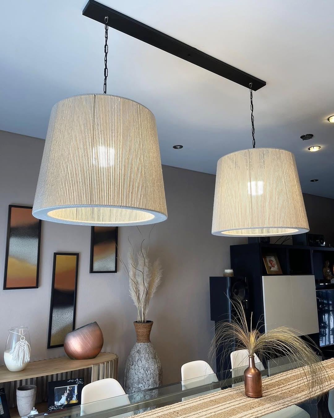 Bu doğal ve şık hasır iplik avize, bulunduğu mekana zarif bir dokunuş katıyor. Elde işlenen hasır liflerinin oluşturduğu ince detaylar, ışığın mekana yumuşakça yayılmasını sağlıyor. Sade ama etkileyici tasarımıyla, hem modern hem de doğal bir görünüm arayanlar için ideal bir tercih. Evinizde sıcak ve huzurlu bir atmosfer yaratmak istiyorsanız, bu avize tam size göre.
