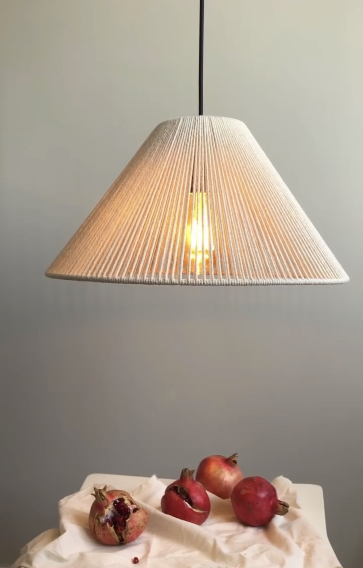 Bu zarif ve modern avize, evinize doğal bir dokunuş katmak için mükemmel bir seçenektir. Özenle işlenmiş iplerle kaplanan bu avize, sade ama etkileyici bir görünüm sunar. 45 cm çapındaki tasarımı ile oturma odası, yemek odası veya yatak odası gibi geniş alanlar için idealdir. Hem klasik hem de çağdaş dekorasyon stilleriyle uyum sağlayacak şekilde tasarlanmıştır.