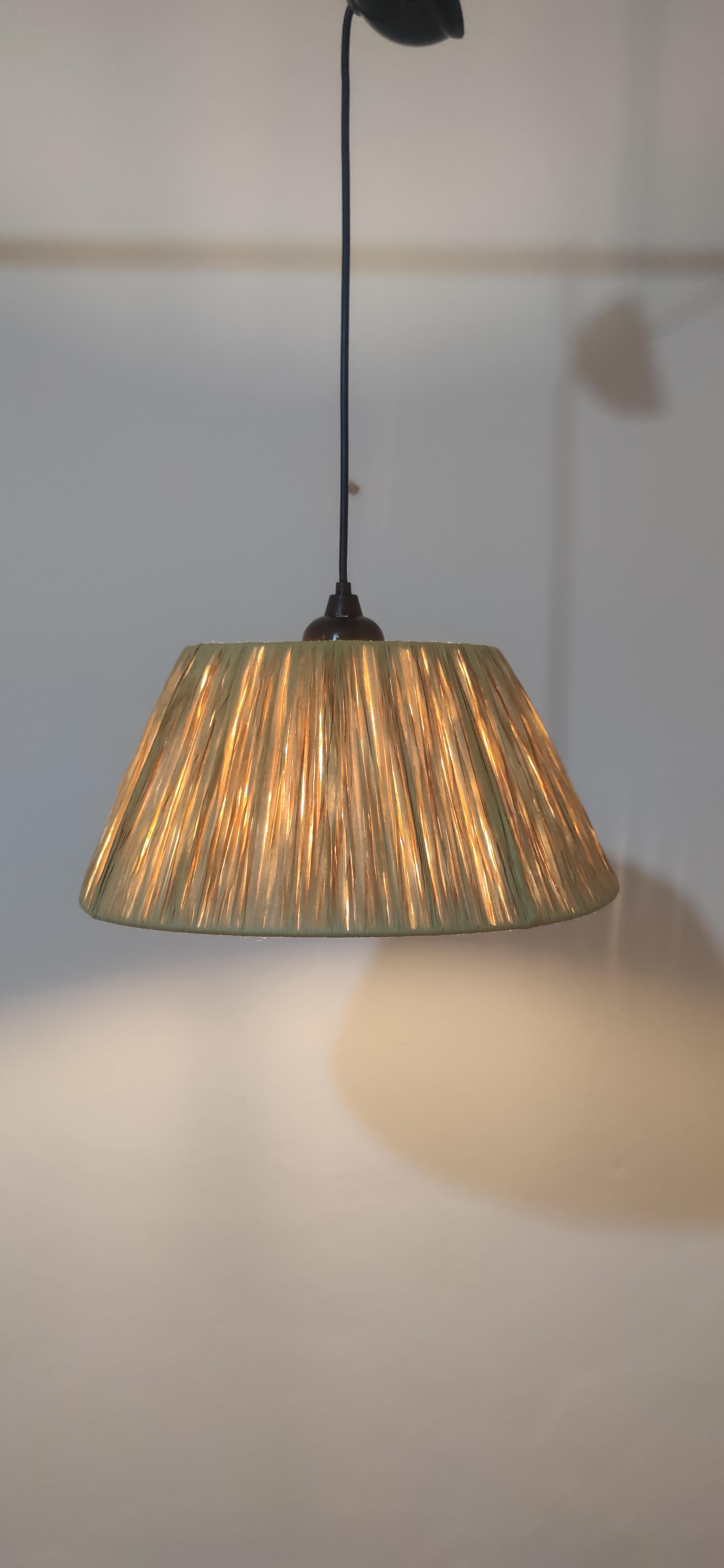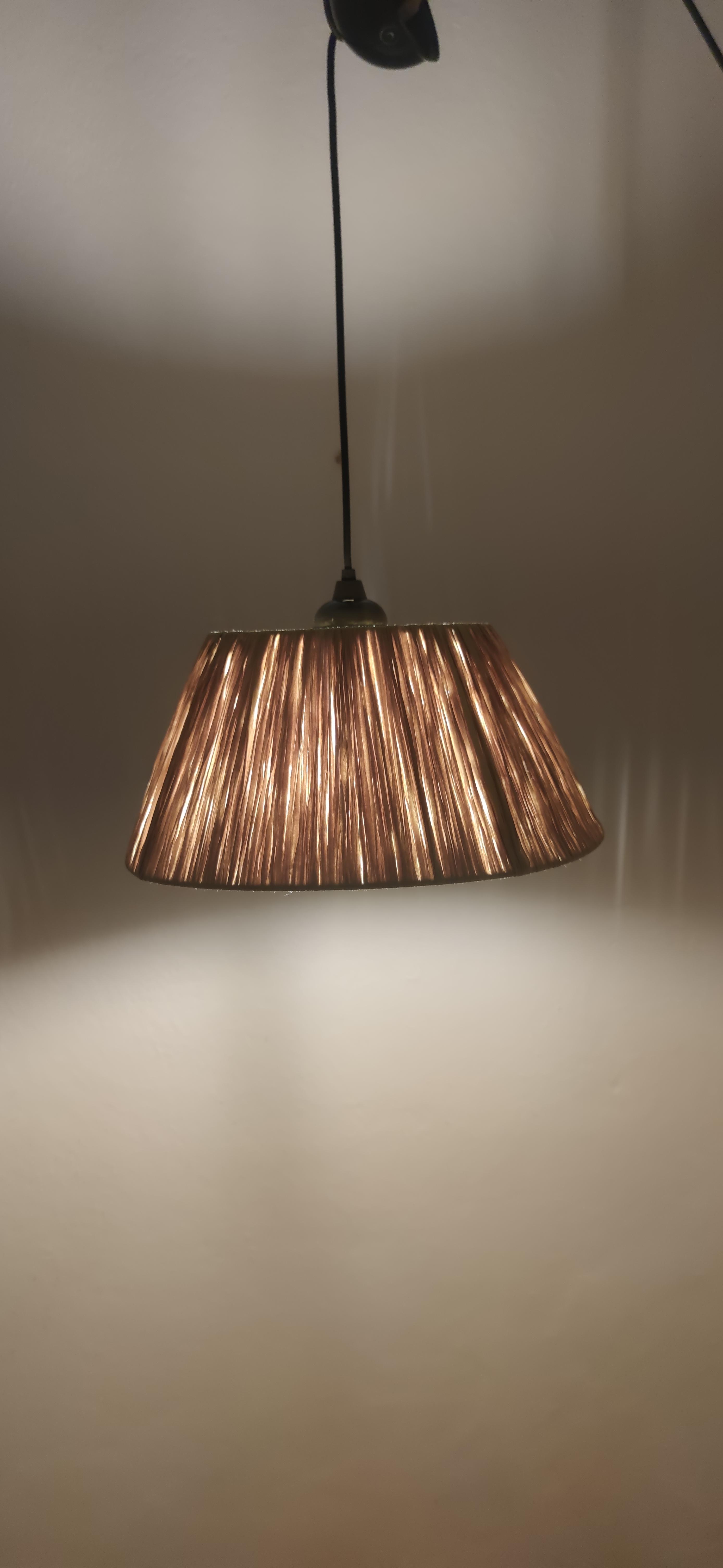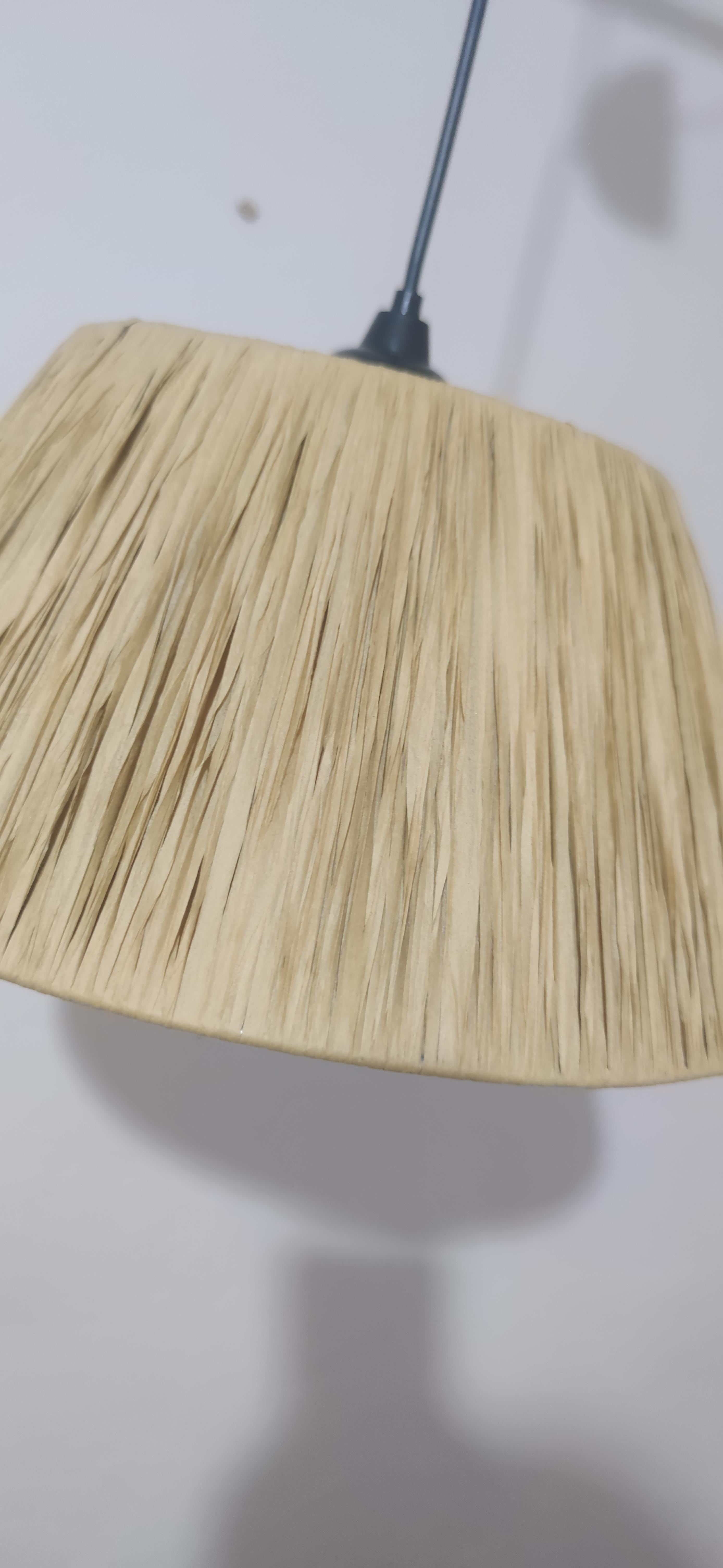 doğal malzemeler ve bohem tarzın mükemmel birleşimi ile evinize sıcaklık ve karakter katın. Özenle el yapımı olan bu avize, sürdürülebilir liflerden dokunmuş zarif bir abajur ile donatılmıştır ve her türlü iç mekana uyum sağlayan çevre dostu bir aydınlatma çözümü sunar.